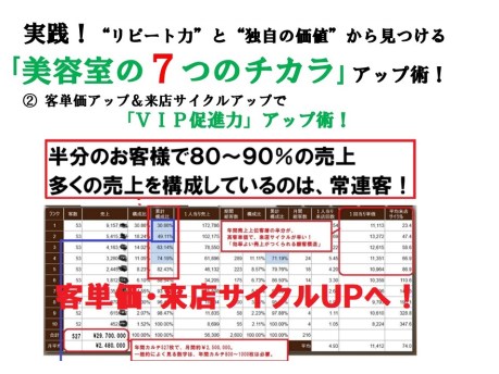 既存のお客様が、サロンのことを今以上に気に入ってくださり、よりVIPなお客様になっていただけて、結果として客単価もアップし、来店サイクルも早くなり、売上アップしている!そんなチカラのことを表現しています。